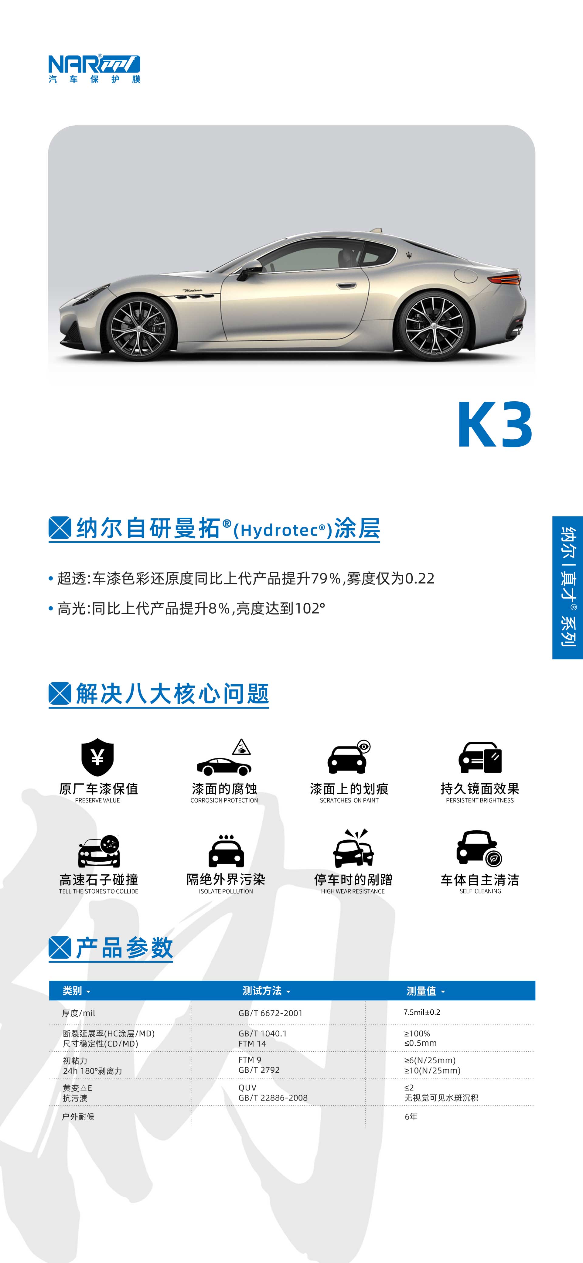 納爾自研曼拓®(Hydrotec°)涂層 超透:車漆色彩還原度同比上代產(chǎn)品提升79%,霧度僅為0.22 高光:同比上代產(chǎn)品提升8%,亮度達(dá)到1029。